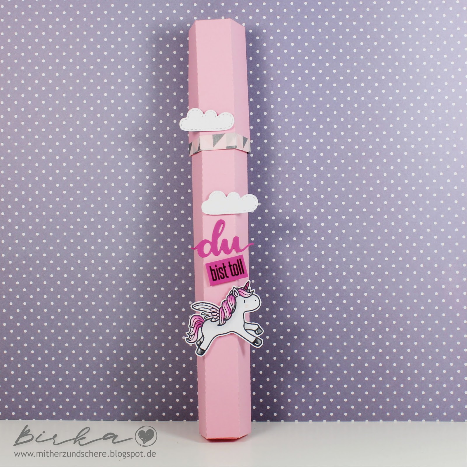 Eigentlich wollte ich eine Giotto-Packung drin verstecken, stellte aber fest, dass die Einhorn-Stifte die ich für sie auch da hatte da ebenfalls perfekt reinpassen ;-) Also hab ich das Giotto (is ja eh für Erwachsende, ich Blödi) weggelassen...