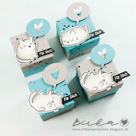 Dann habe ich mir eine ganz einfache Schachtel mit Deckel in meiner Silhouette-Software entworfen und da wars schon fast fertig. Musste ich nur noch nach einem winzigen Sentiment suchen, weil die Katze sich schon n bissl dick macht ;-)